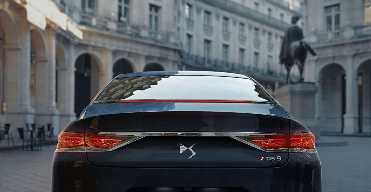 Динамічний нахил даху, довгий капот, коротка кришка багажника, покажчики поворотів у задніх стійках даху — все це нагадує першу модель DS 1955 року. Разом з тим, велика решітка радіатора DS WINGS демонструє міцний зв’язок із сучасними моделями Бренду та натякає на потужний мотор під капотом автомобіля. Окремо варто відзначити фари DS ACTIVE LED VISION — це не тільки гарне освітлення шляху, але й деталь високого стилю: роздільні модулі всередині фари візуально нагадують дорогоцінне каміння. Вишуканий вигляд автомобіля підкреслюють об’ємні 3D LED ліхтарі, контрастний чорний дах, а також великі 19-дюймові колісні диски Monaco або Versailles. У цьому вся суть бізнес-седана DS 9: у цьому випадку кожній деталі приділяють максимальну увагу, у підсумку перетворюючи автомобіль на справжній об’єкт дизайнерського мистецтва на колесах.
